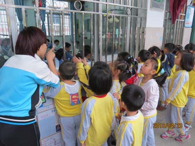 为加强幼小衔接工作,帮助大班孩子尽快适应小学生活,2013年4月23日上午,田心幼儿园大班120位孩子在教师的带领下参观了笋岗小学。