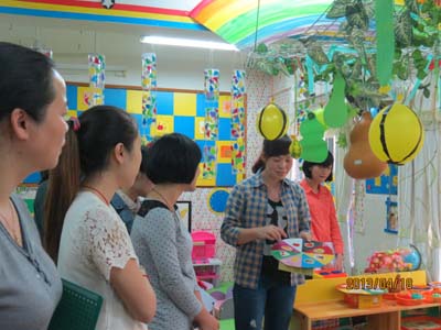 在副园长的带领下,老师们通过介绍材料、现场观摩、提出问题、交流研讨等形式,每个班逐一进行观摩学习。这样不仅