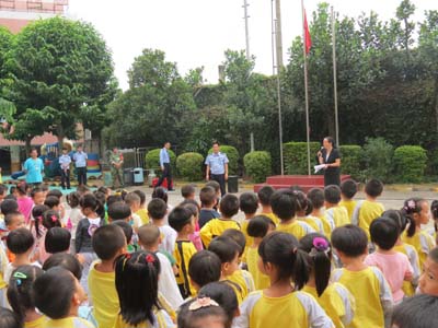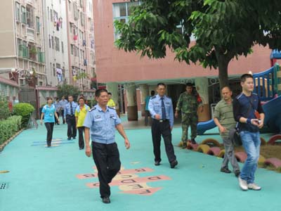 为了进一步提升师生的消防安全素质,增强师生防范火灾的能力, 2013年11月8日星期五下午,我园结合“11·9消防宣传日”及本园实际,邀请了笋岗派出所消防科警官和保安队员来园共同组织全体师生进行消防逃生演练活动。