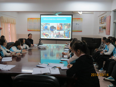 为了提高全体员工的安全意识,进一步学习如何应对幼儿园的突发事件,2014年3月14日下午,田心幼儿园全体员工在四楼会议室进行了《如何应对幼儿园的突发事件》的安全培训。活动中,徐园长带领员工们了解了近期媒体报道的多起幼儿园突发事件,提出了本园应做好安全防范措施与安全要求,还利用PPT学习了《如何应对幼儿园的突发性事件》。通过培训,大大提高了员工们的安全和防范意识。