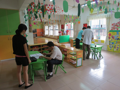 2014年5月15日上午,罗湖区疾控中心的医务人员来我园进行细菌测查,医务人员对教室里的玩具、桌椅、睡具和教工的手等都提取了样本,并带回进行相关的检测。在每一次上级卫生监督部门的例行抽检中,我园的各项标准都顺利通过,符合卫生要求,并连续多年荣获深圳市卫生保健优秀园所称号,希望继续努力,保持好成绩。
