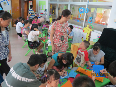 新小班的孩子在家长们的陪同下,走进了田心幼儿园,参加了以班级为单位的新生见面会。各班班主任先带领家长和孩子们参观班级环境,老师们还和孩子们一起搭积木、做游戏,消除了师生间的陌生感。最后在老师的组织下,家长和孩子们玩了好玩的亲子音乐游戏,进行亲子美工制作——《温馨的一家》。新生家长见面会的成功开展,让家长和孩子了解了幼儿园、了解了班级老师,同时拉近了教师与家长的距离,增进了师生之间的感情。