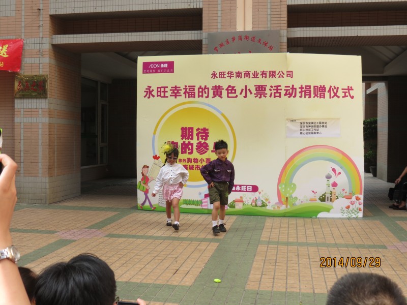 2014年9月29日下午,田心幼儿园的20名小模特,参加了由笋岗街道办、安澜机构和永旺集团(吉之岛)联合在庆云花园文化广场举行的“秋意凉来袭,永旺暖你心”——幸福邻里童装大派送活动。