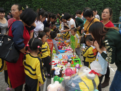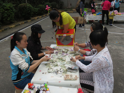 我们的活动得到家长们的积极响应,孩子们都从家里带来了小玩具、图书,他们非常热情的参与到活动中,尤其是在拍卖环节,家长们的竞拍非常激烈,如同一场爱心奉献大比拼,使每一件拍卖品成交的价格都远远高于物品实际的价格。在最后的玩具图书义卖环节中,家长们鼓励孩子主动去购买。活动中家长们的大力支持以及小朋友们热情奉献的精神让我们很是感动。通过此次义卖活动,丰富了孩子们的角色体验,增进了孩子的社会交往和社会实践能力,激发了孩子的爱心和同情心,充分让孩子体验关心他人所带来的喜悦心情,知道选择适合自己的方式去帮助他们。此次活动共筹得爱心善款5048元,中班级准备将这笔钱捐献到深圳市福利院。在此特别感谢中班年级全体家长和孩子们。