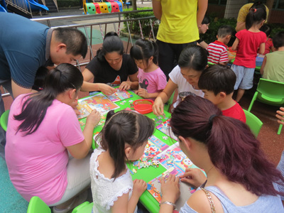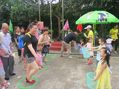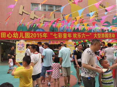 “六一”儿童节是孩子们最隆重、最开心的节日。为了能让孩子们度过一个健康、快乐、有意义的儿童节,田心幼儿园于2015年5月29日下午,举办了“七彩童年欢乐六一”大型亲子游园活动,此次游园活动开设了《你抛我接》、《运西瓜》、《乒乓平衡》、《螃蟹夹球》、《打保龄球》、《排围棋》、《套圈前进》、《贴鼻子》等17个游戏项目,同时笋岗社区工作站、肯德基笋岗分店、王老吉公司的工作人员也来到幼儿园,为小朋友开设了专项游戏。