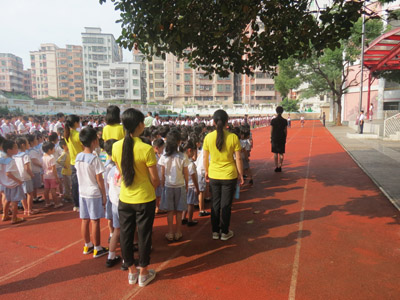 对孩子们而言,小学是一个陌生而又富有诱惑力的地方。一路上,孩子们兴奋不已,问题不断。他们带着问题和强烈的好奇,走进了笋岗小学的大门,他们用自己的眼睛认真寻找着小学生活和幼儿园生活的差别。小学的一切都让他们感到新奇:参加笋岗小学的升旗仪式、聆听小学校长的讲话、参观学校的教学楼、宣传栏、操场等设施,这些都激发了孩子们对小学的生活的向往。参观活动结束后,老师和孩子们一起交流、讨论今天的所见所闻,孩子们的言语中充满对小学生活的向往。