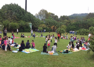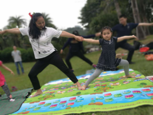 在洪湖公园,小二班的大朋友、小朋友在地毯一样的大草坪上,一起玩游戏,一起做亲子瑜伽,一起表演节目呢!阳光和熙,亲情浓浓,这份美好的记忆深深留在大家的心里.